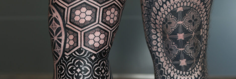 SEAN’S LEGS This design originated from a meticulously hand-drawn framework that spans the entire leg, serving as the foundation for a series of geometric and symmetrical patterns. Each element was carefully positioned to ensure a seamless fit within its section while complementing the natural flow and muscle structure of the leg, resulting in a cohesive …